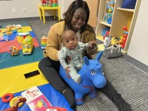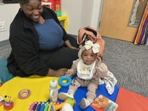 At a recent CHD Early Intervention (EI) program’s Working Moms Playgroup, a musical interlude began with a rendition of “Row Row Row Your Boat,” and nine-month-old Kairo’s face lit up. “Yes, this is still his favorite song,” said his mother Kyrah.