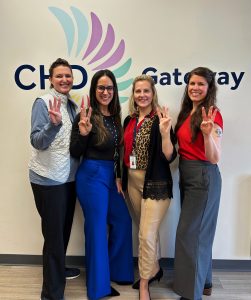 Pictured celebrating Gateway’s third anniversary are (L-R) Central Region Outpatient Program Director Kathryn Mulcahy, Adult and Youth Crisis Stabilization Program Director Alicia Shibley, Central Region Director of Nursing Erica Trudell, and Mobile Crisis Interventions Program Director Melissa Burke.